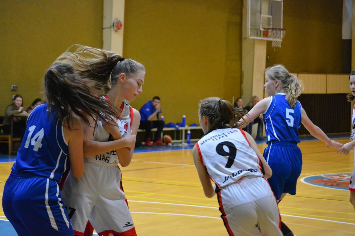 Základní pětka vstoupila do zápasu velmi vlažně a v páté minutě svítilo na ukazateli skóre 0:11 a my jsme téměř nevystřelili normálně na koš, když nepočítám několik prapodivných pokusů odhodit míč směrem ke koši. Po vystřídání se naše hra trochu zlepšila a začali jsme dotahovat na 8:15 na konci první čtvrtiny a věřili jsme v nastartování týmu a obrat zápasu. Pořád jsme chtěli střídat širší sestavu, aby všechny hráčky byly v zápase zapojené a získaly zkušenosti ve vyrovnaném souboji. Bohužel první polovina čtvrtiny byla jak ze špatného snu. Přišla šňůra soupeřek 4:15 a naše nasazení opět vlažné. Do poločasu jsme mírně korigovali na poločasových 18:34 a burcováním v šatně se snažili se zápasem něco udělat. Zúžili jsme sestavu a začátek poločasu byl nadějný, kdy nám patřilo prvních pět minut a šňůra 11:2 nám dodala naději. Za stavu 33:40 ovšem další kolaps a čtvrtina končí 33:49. Pořád jsme věřili v obrat, v posledním zápase jsme dokázali rozhodnout šňůrou 24:0 za pět minut. Ale i poslední čtvrtinu naše holky odehrály v útlumu a teprve na konci korigovaly na rozdíl 10ti bodů.