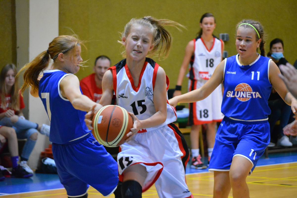 V neděli čekal naše mladé basketbalistky zcela jiný soupeř. SLUNETA Ústí nad Labem patří ke kandidátům na postup do Extraligy U14. Utkání bylo velkou basketbalovou bitvou. Bojovalo se o každý míč, o každý koš. Rychlé tempo v útoku a agresivní obrana vydržely oběma týmům po celé utkání.